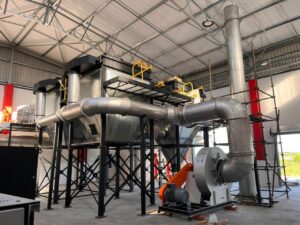 In 2025, years of production, planning, and implementation coordination resulted in the delivery of five large V500 systems in Cameroon and three in Niger, with Liberia and eSwatini each receiving one V500 system. These high-capacity systems, capable of processing 360 kg of medical waste per hour, are equipped with wet scrubbers to help reduce air pollution. eSwatini was the only country to receive a dry filtration configuration.